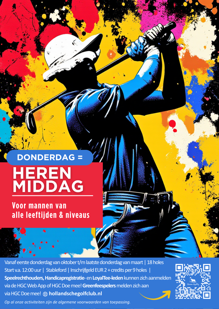 - De herenmiddag start vanaf de 1e donderdag in oktober en eindigt op de laatste donderdag van maart, die tevens de slotmiddag is.
