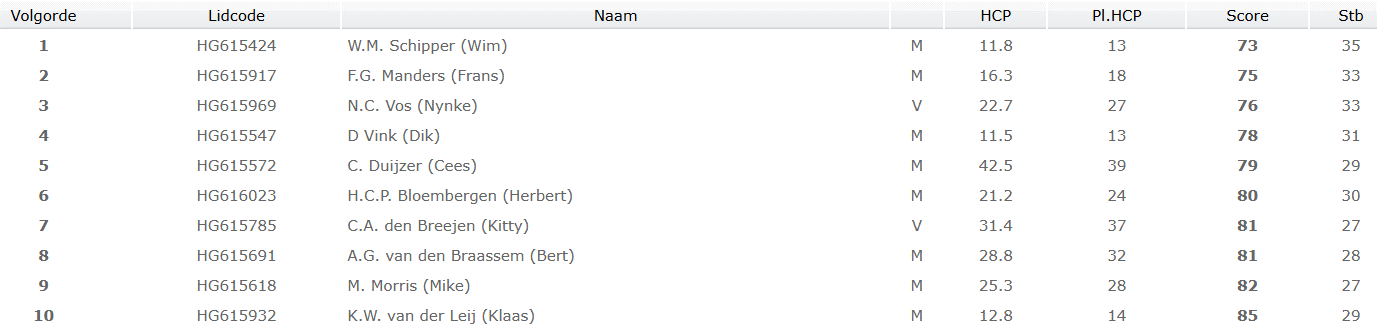 De spanning hing vanaf de eerste afslag op hole 1 in de lucht. De top 6 stond zó dicht bij elkaar dat elke slag telde, met prachtige drives, slimme approaches en zenuwslopende putts. Bovendien waren alle 6 spelers die in de top 6 stonden ook present op startlijst van zaterdag; kortom een echte wedstrijd.